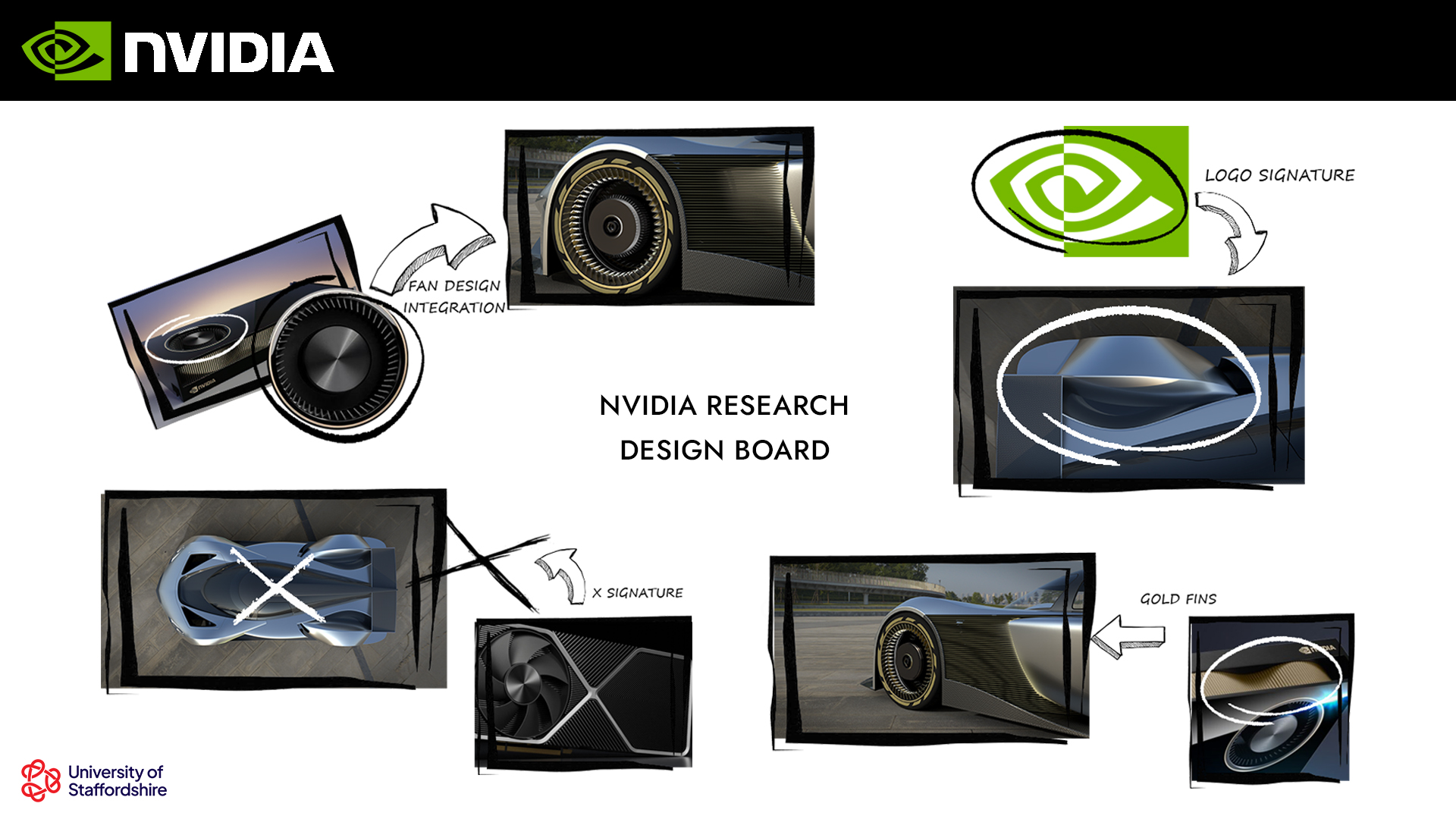 From early research and sketching to advanced digital modelling, the project integrates NVIDIA’s technological ethos into the vehicle’s form, aerodynamics, and design language. Final renders, Alias modelling snapshots, and a short, animated video showcases the full journey from concept to completion.